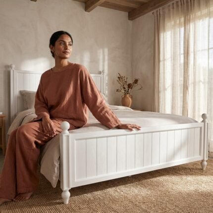 PRITI Wood Brushed Iron Platform Bed – Queen