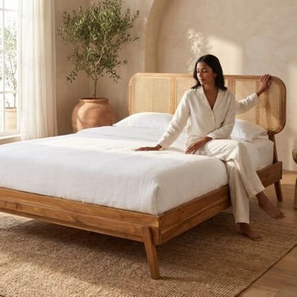 PRITI Wooden Bed in Rattan (Sisam Wooden with Cane )