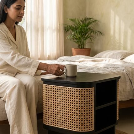 PRITI Bedside Table (Wood with Cane )