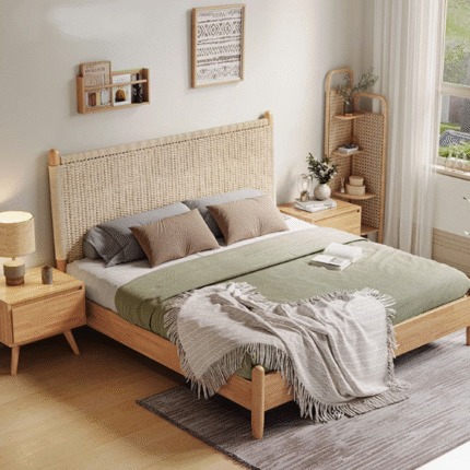 PRITI Cane Queen Bed (Solid Wood with cane )