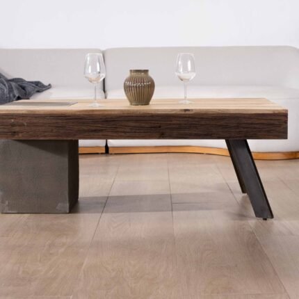 Table basse ronde Dalva en bois d’acacia et pieds effet béton