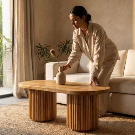 PRITI Wood Ovel Coffee Table (Solid Wood )