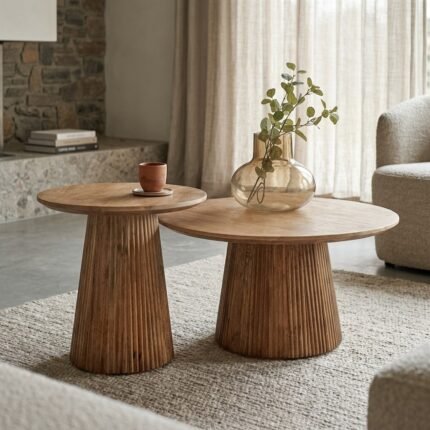 Coffee Table Set Light Brown 80 and 50 cm – PRITI