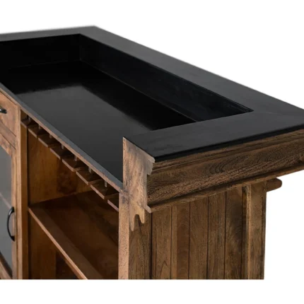 Enhance your home or commercial space with this Bar Counter with Storage  crafted from premium solid wood for durability, strength, and timeless elegance. Designed for functionality and style, this bar counter features spacious storage compartments and shelves, perfect for organizing bottles, glassware, and bar essentials. The natural wood grain finish adds warmth and character, making it a standout piece in any living room, home bar, café, or restaurant. Handcrafted by skilled artisans, each bar counter reflects superior craftsmanship, eco-friendly materials, and lasting quality. Its sturdy construction ensures long-term use, while the stylish design complements both modern and traditional interiors. Ideal for hosting guests, serving drinks, or displaying décor, this solid wood bar counter with storage is a practical and elegant addition to any space. Upgrade your bar area with this versatile piece that combines functionality, aesthetic appeal, and the natural charm of solid wood.