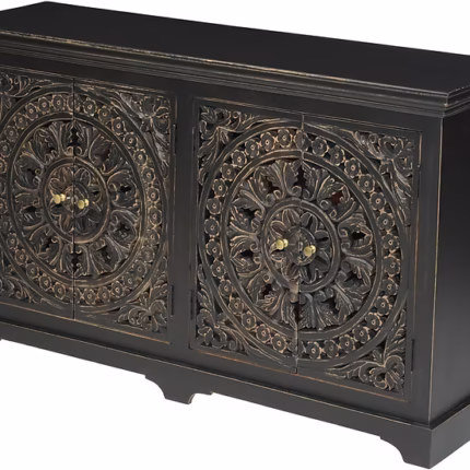 Exclusive Wood Summit Storage Cabinet with Artistic Detailing