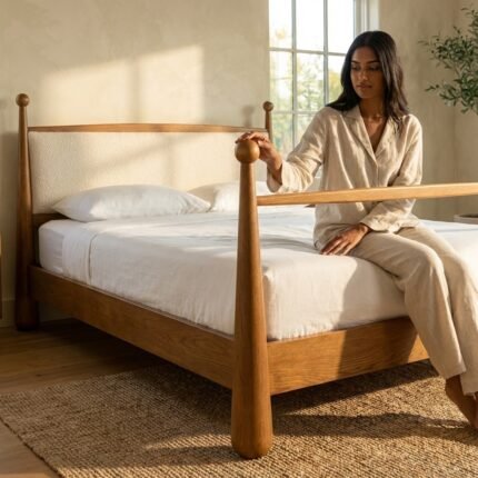Mid-Century Solid Wood Designer Bed