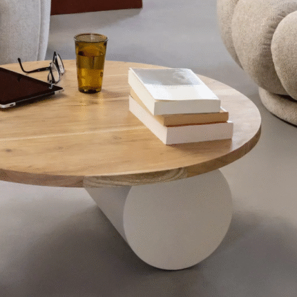 Table basse ronde Dalva en bois d’acacia et pieds effet béton