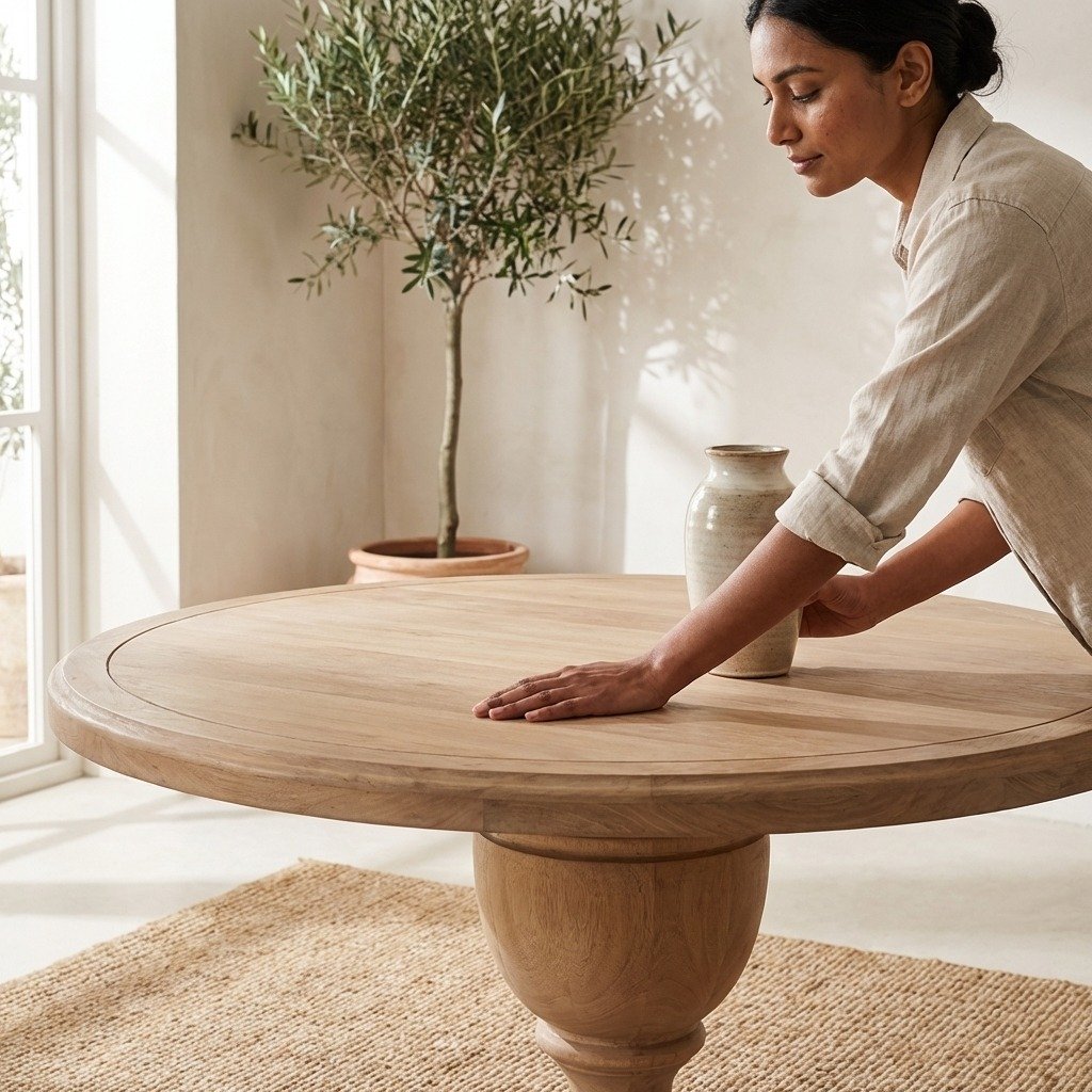 Perfect for use in a home dining room, kitchen, boutique café, or hospitality setting, this round 162cm white cedar dining table serves as a timeless investment in quality and style. Whether hosting family dinners or elegant social gatherings, this handcrafted dining table brings authenticity, charm, and enduring beauty to every occasion.