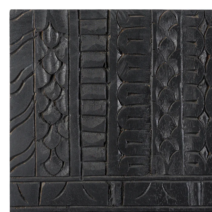 Fabriquée en bois massif, elle garantit robustesse et durabilité, tout en conservant un charme naturel. Son design géométrique sculpté à la main fait de chaque pièce un modèle unique, offrant un caractère exclusif à votre intérieur. Placée dans une pièce lumineuse ou proche d’objets décoratifs contrastants, cette armoire noire gravée en bois devient rapidement le point focal de votre décoration.