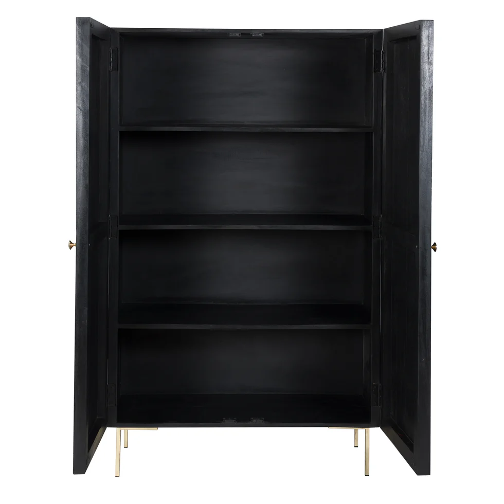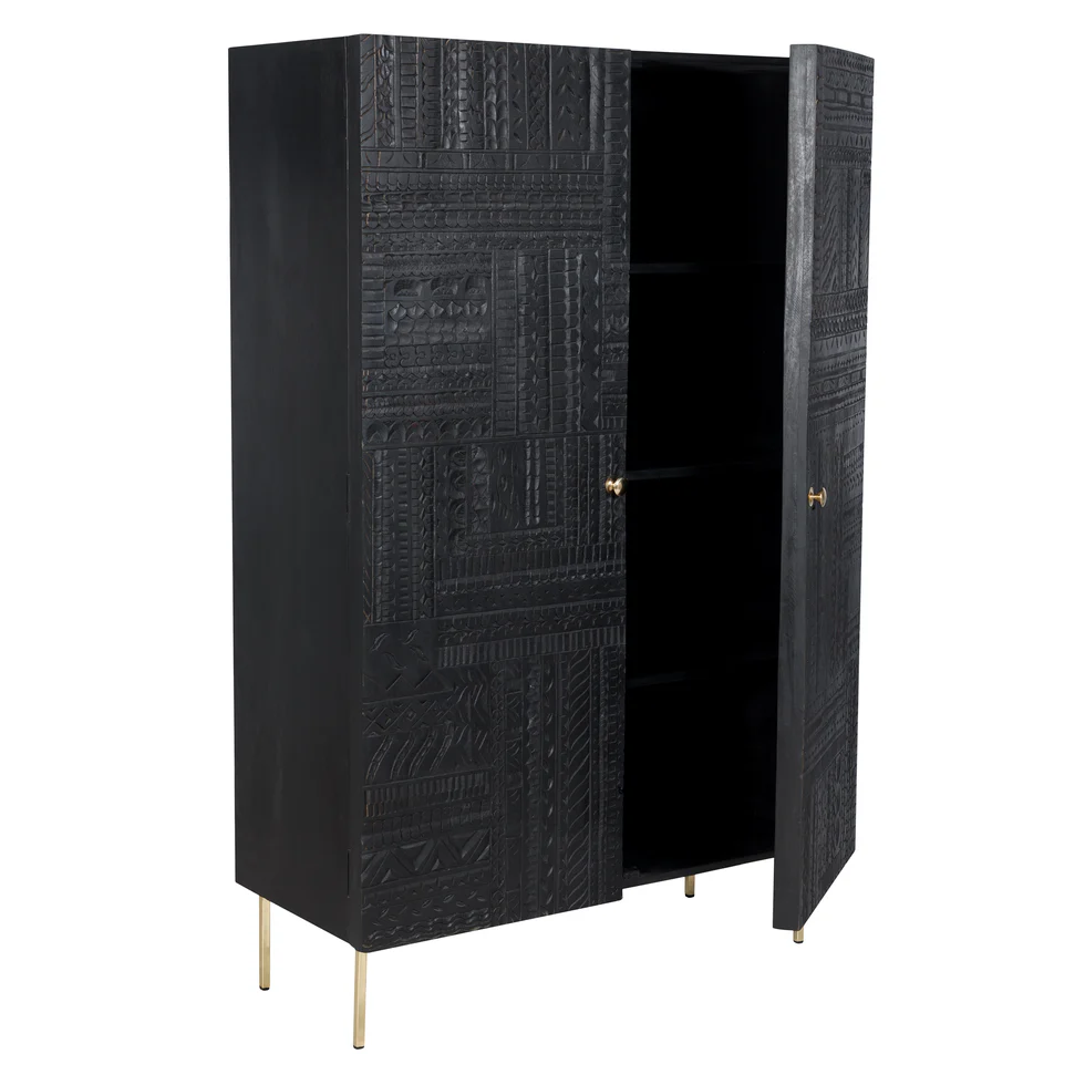 Apportez une touche d’élégance contemporaine et d’originalité à votre intérieur avec cette superbe armoire noire gravée en bois. Son design unique, marqué par des motifs minutieusement sculptés à la main, en fait une pièce décorative exceptionnelle capable de transformer instantanément l’ambiance d’un salon, d’une chambre ou d’une entrée. Le bois noir profond contraste magnifiquement avec les pieds métalliques dorés, créant un équilibre parfait entre modernité, sophistication et authenticité artisanale.