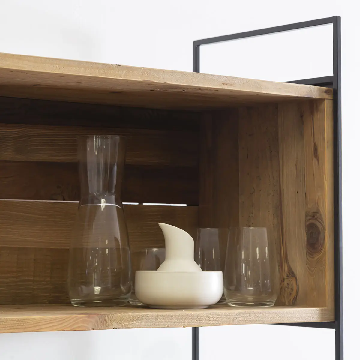 Fabriquée à partir de pin recyclé soigneusement retravaillé et associée à une structure en métal robuste, cette bibliothèque séduit par son style brut et son cachet industriel. Chaque planche conserve volontairement ses irrégularités, ses aspérités et ses marques du temps, rendant chaque bibliothèque en bois recyclé totalement unique. Ces imperfections ne sont pas des défauts, mais la signature d’un meuble chargé d’histoire.