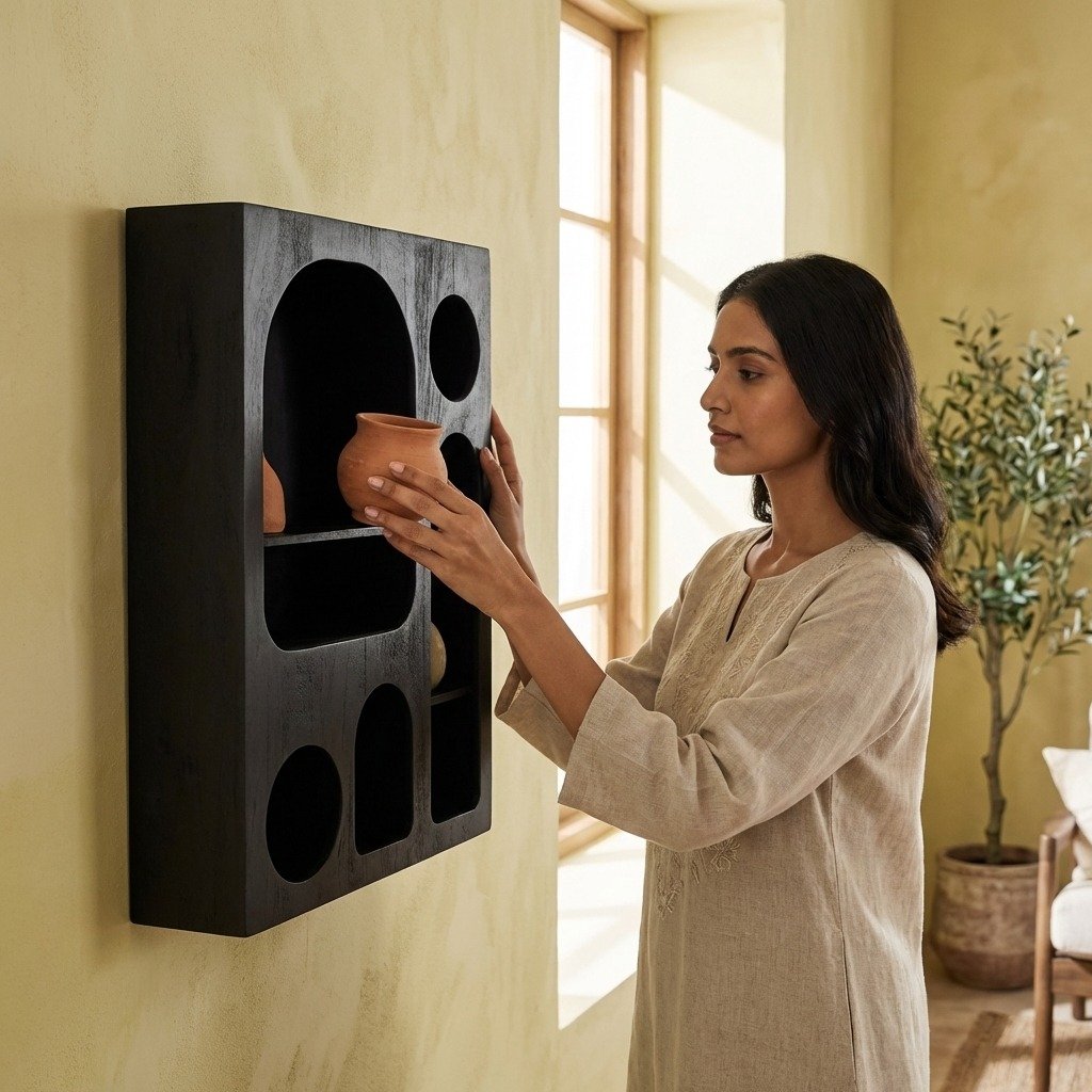 Black Wall Hanging Display Shelves (Black Wood) – PRITI