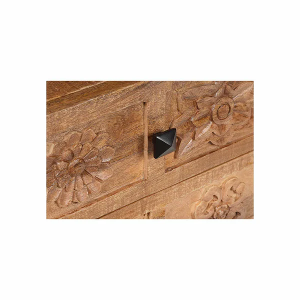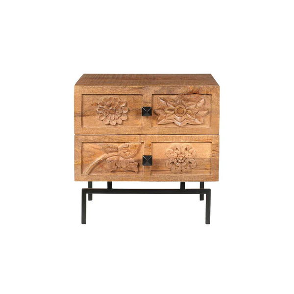 Dotée de deux tiroirs généreux, cette table de chevet offre un espace de rangement pratique pour vos essentiels de nuit tels que vos livres, vos lunettes ou votre réveil. Les tiroirs sont sculptés à la main avec des motifs floraux délicats, reflétant un savoir-faire artisanal exceptionnel et ajoutant une touche artistique à ce meuble. Chaque détail est soigneusement travaillé, faisant de cette table de chevet une pièce unique et pleine de charme.