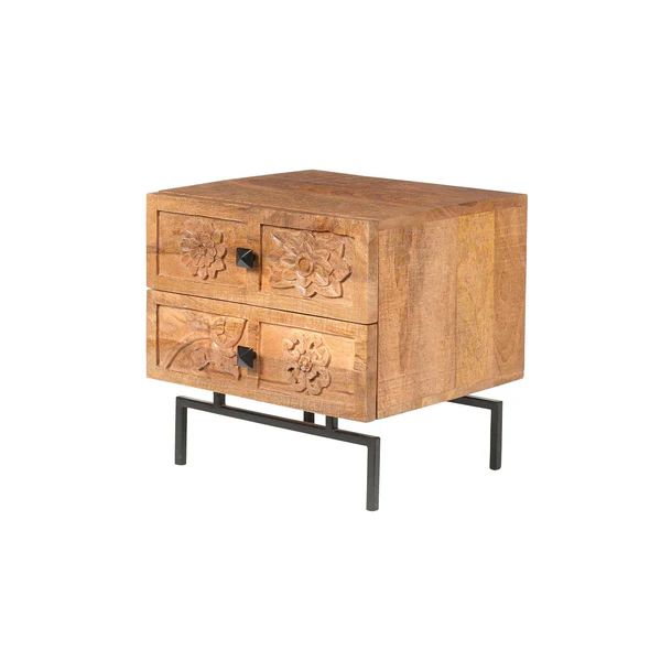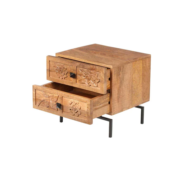 Fabriquée à partir de bois de 22 manguier massif, cette table de chevet sculptée en bois de manguier massif combine robustesse, élégance et fonctionnalité pour sublimer votre chambre à coucher. Sa structure solide et durable, d’une épaisseur de 1,5 cm, garantit une stabilité et une longévité exceptionnelles. La finition naturelle met en valeur le grain authentique du bois, apportant chaleur et caractère à votre espace de nuit.
