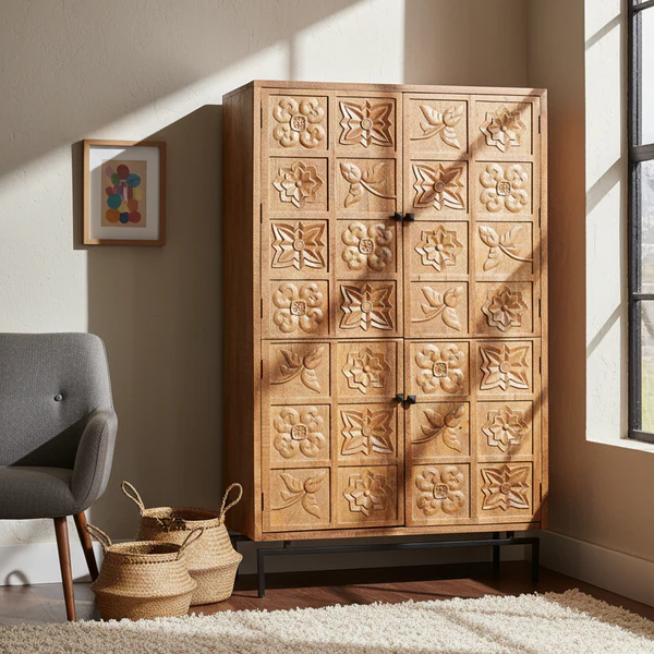 Investissez dans une armoire sculptée en bois de manguier massif de qualité, où l’artisanat, la durabilité et le design se rencontrent pour créer une pièce intemporelle et fonctionnelle.