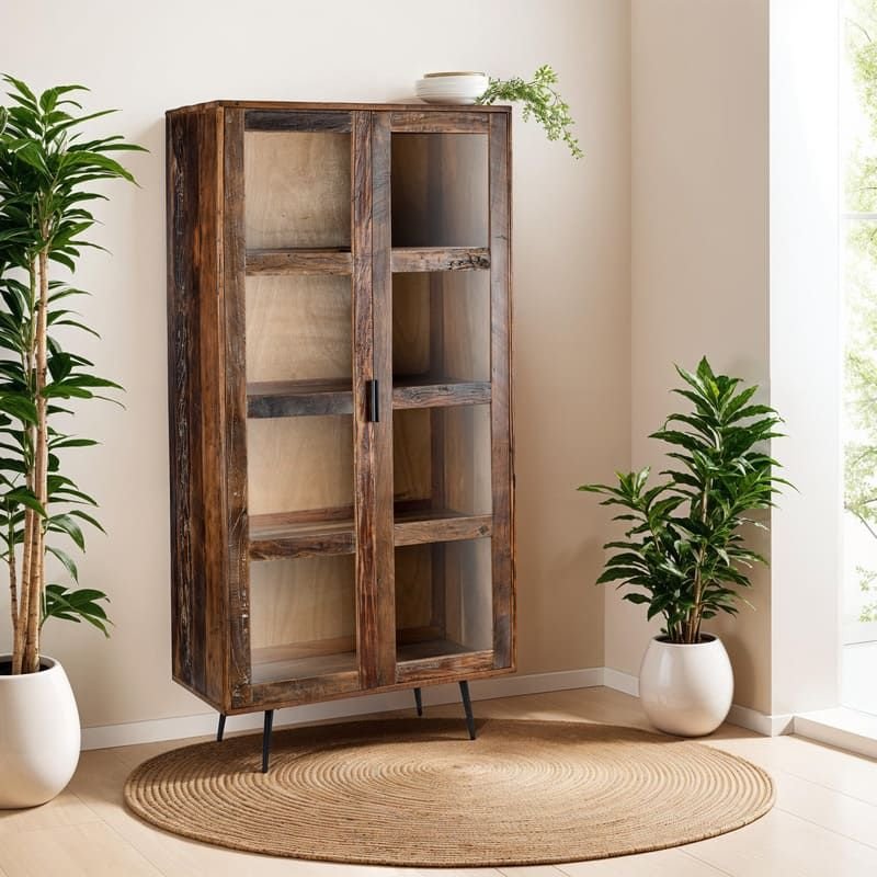 Bois Massif Recyclé & Métal Noir – 2 Portes