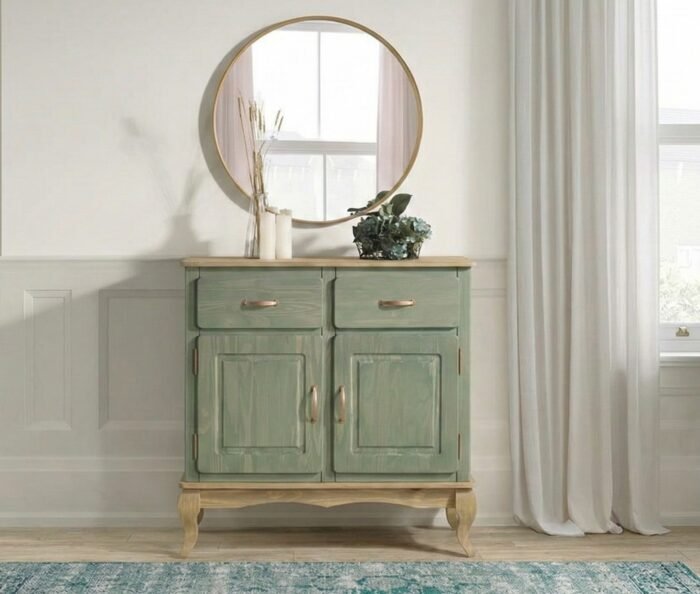 Enhance your home with this timeless wooden Buffet Chest of Drawers Green 2-Door and enjoy both practicality and decorative appeal in one stunning furniture piece.