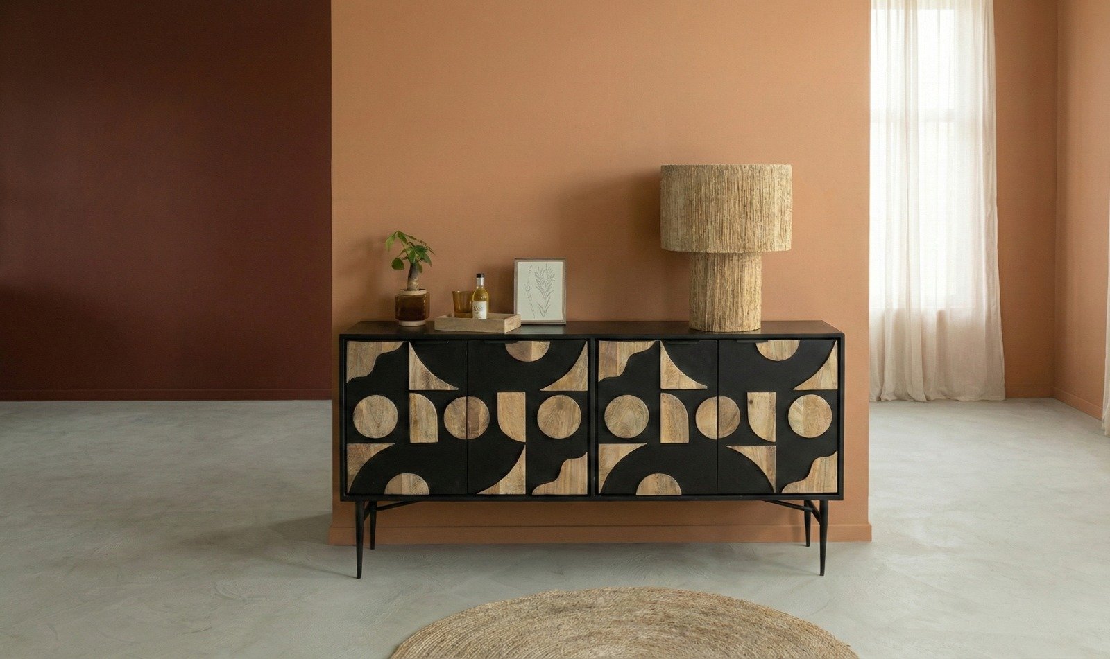 Buffet en bois de manguier et métal noir – design graphique et esprit contemporain