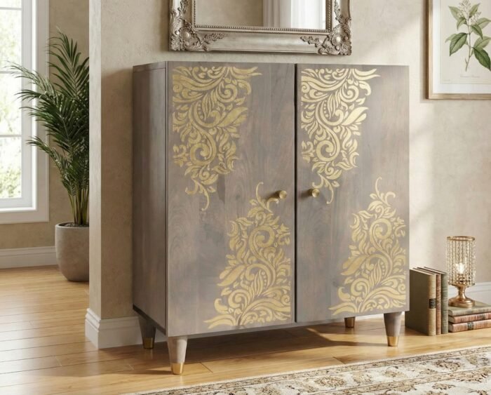 Buffet en bois de manguier-12 massif gris et or