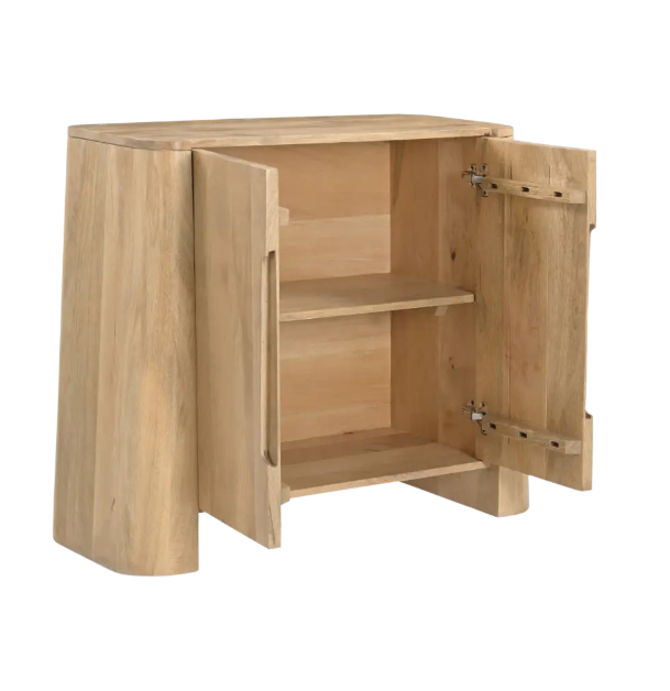 Pensé pour allier esthétique et praticité, ce buffet design est équipé de deux portes renfermant une étagère intérieure spacieuse. Vous pouvez y ranger votre vaisselle, votre linge de maison, vos verres ou vos accessoires du quotidien en toute simplicité. Grâce à son organisation fonctionnelle, il vous aide à garder un espace de vie ordonné et harmonieux, tout en ajoutant une touche naturelle et élégante à votre décoration.