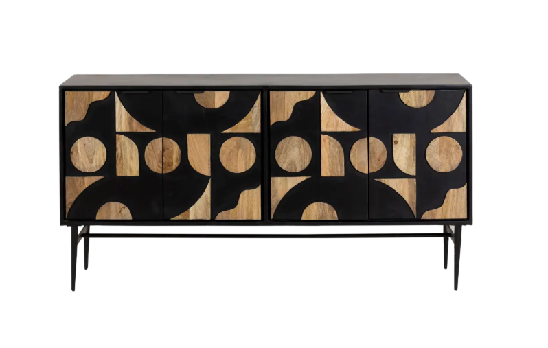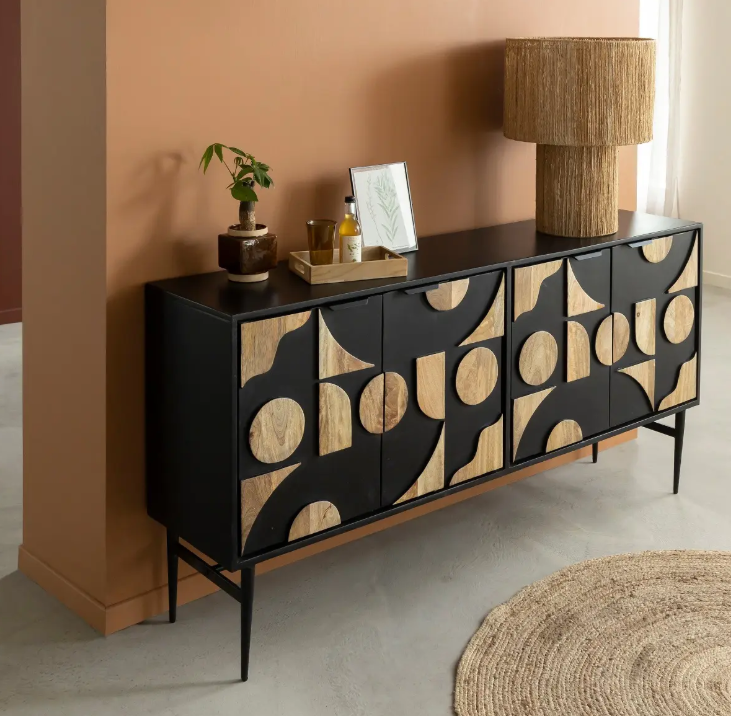 Buffet en bois de manguier et métal noir – design graphique et esprit contemporain