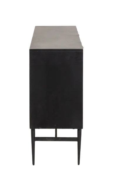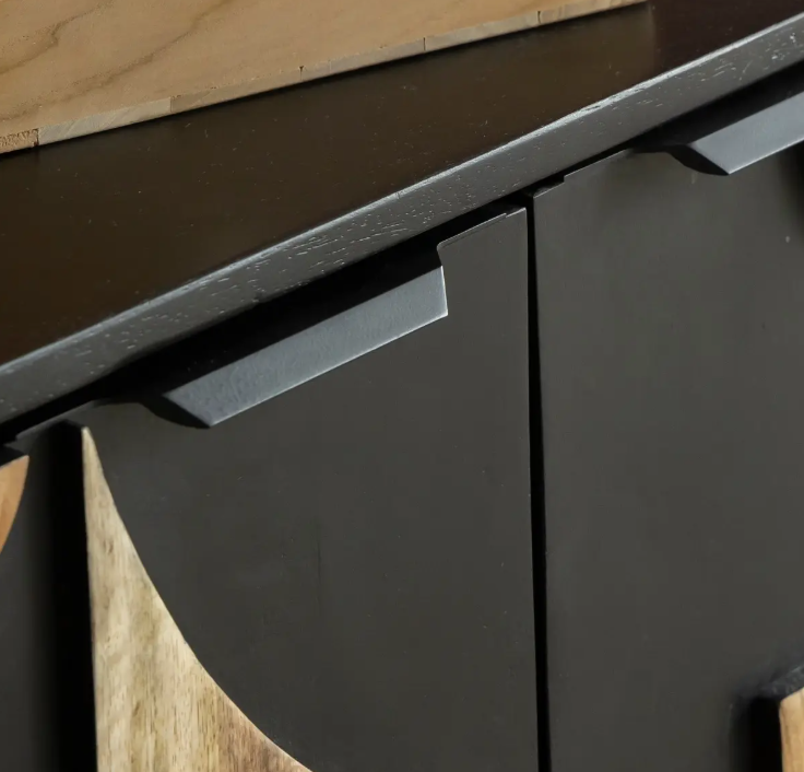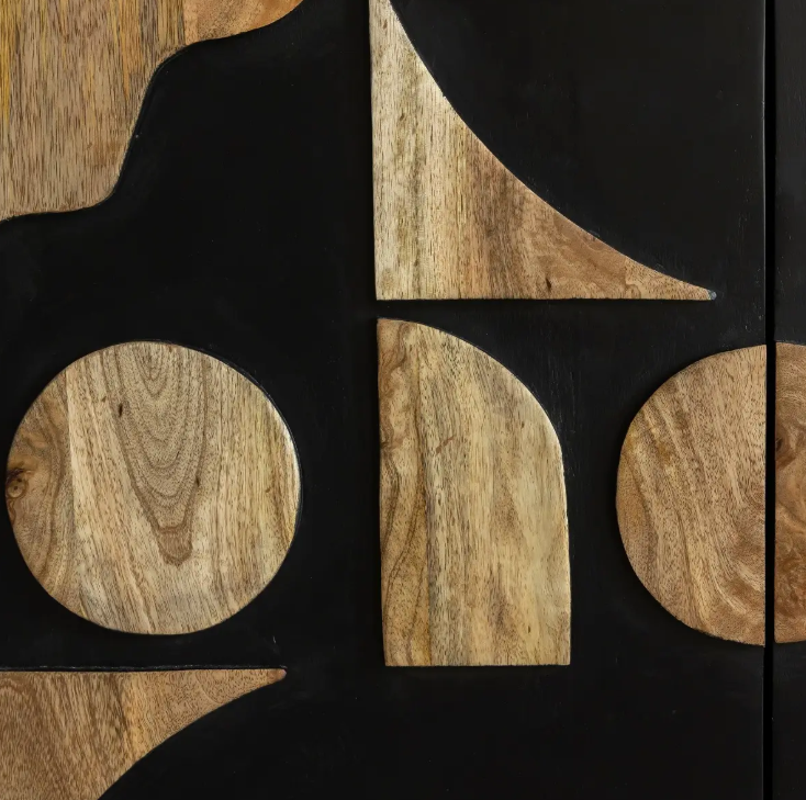 Audacieux et raffiné, le buffet en bois de manguier massif et métal noir séduit par son design graphique et son jeu de contrastes visuels. Véritable œuvre de style, il marie la chaleur du bois naturel à la modernité du métal noir, créant une pièce au caractère affirmé. Les façades géométriques alternent motifs en relief et aplats sombres, offrant une composition dynamique et harmonieuse qui attire instantanément le regard. Chaque porte devient ainsi un élément décoratif unique, révélant tout le savoir-faire artisanal de sa conception.