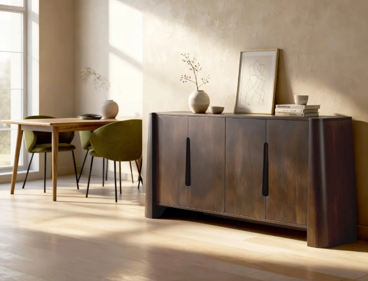 Buffet en bois de manguier foncé Liriel – Élégance contemporaine et charme authentique