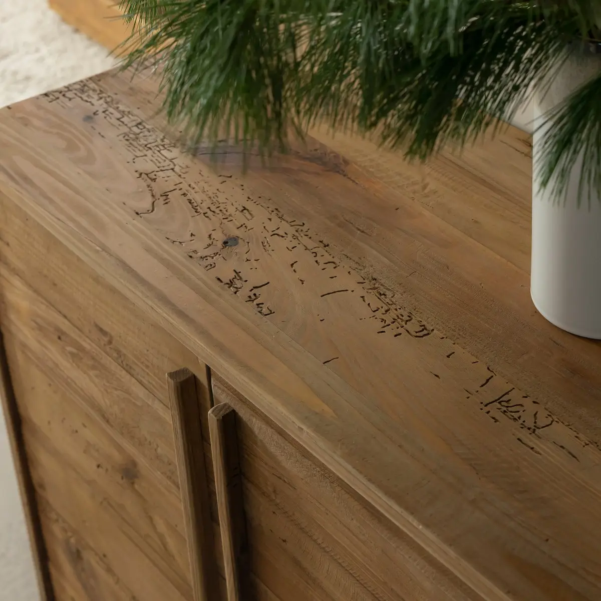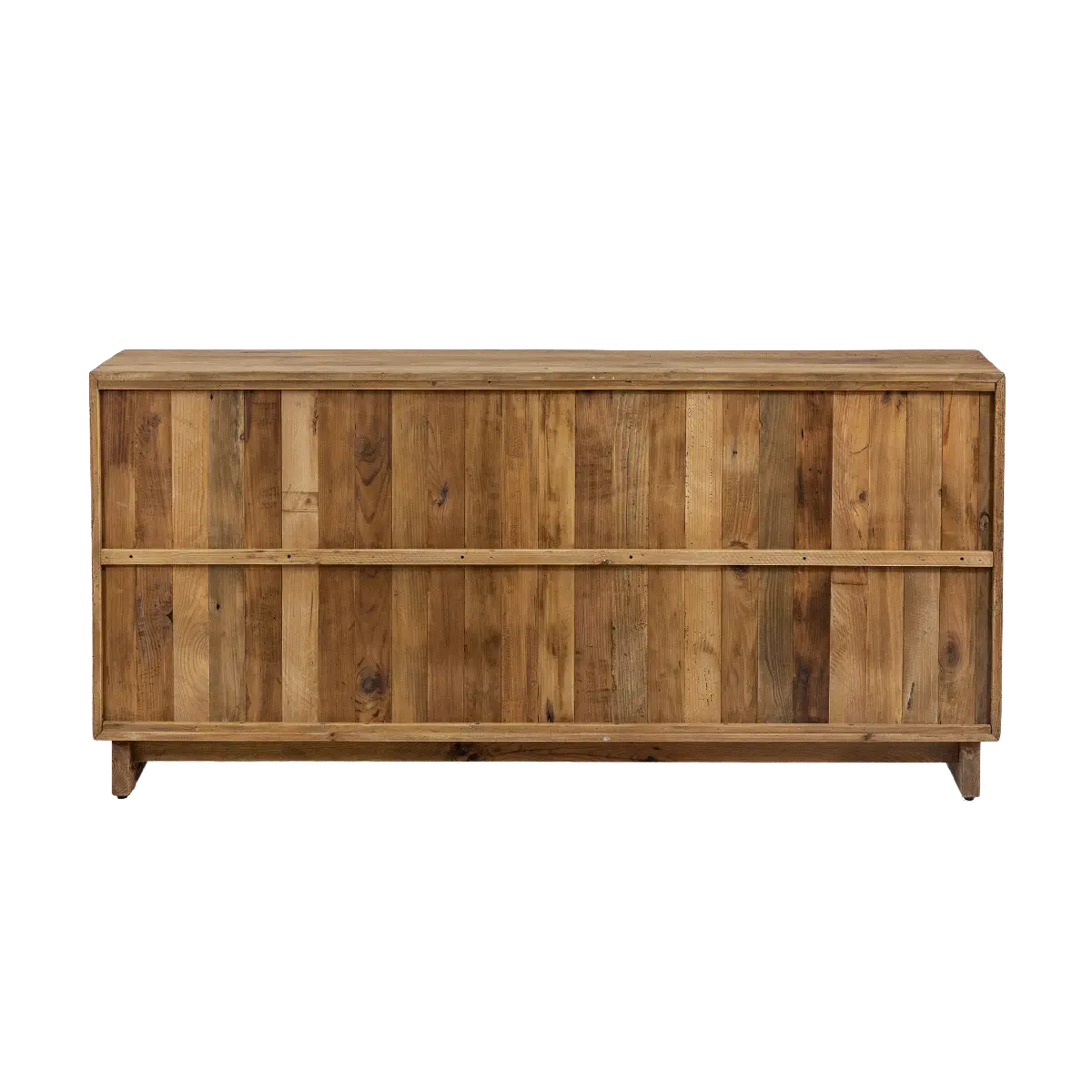Fonctionnel au quotidien, ce buffet en bois recyclé dispose de quatre portes dissimulant un vaste espace de rangement. Il est idéal pour organiser vaisselle, linge de maison, dossiers ou objets du quotidien tout en conservant un espace ordonné. Son large plateau supérieur offre également une surface parfaite pour exposer des objets décoratifs, cadres, vases ou luminaires.