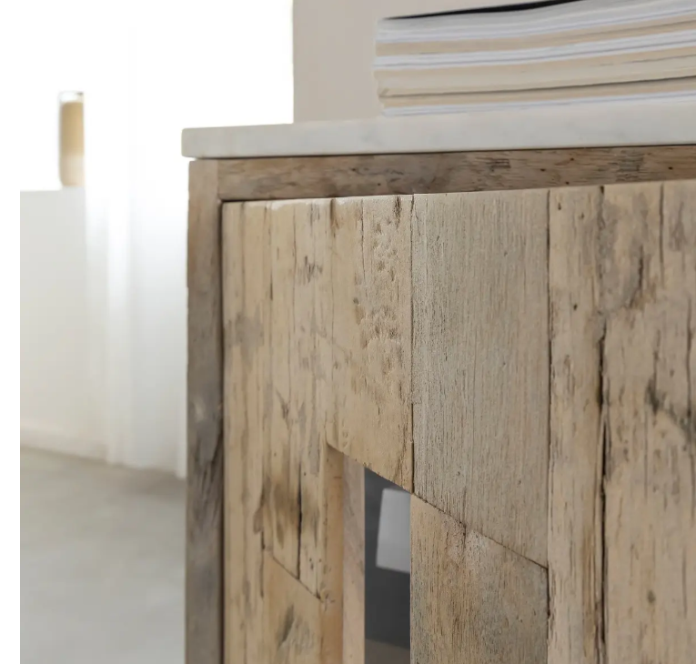 Ce buffet en bois de manguier et marbre naturel séduit par son mélange raffiné de matériaux nobles et authentiques. Son plateau en marbre véritable, lumineux et délicatement veiné, apporte une touche d’élégance intemporelle, tandis que sa structure en bois de manguier massif et bois recyclé met en valeur la chaleur et la richesse du bois naturel. Cette alliance harmonieuse crée un meuble à la fois sophistiqué et plein de caractère. Buffet en marbre et bois de