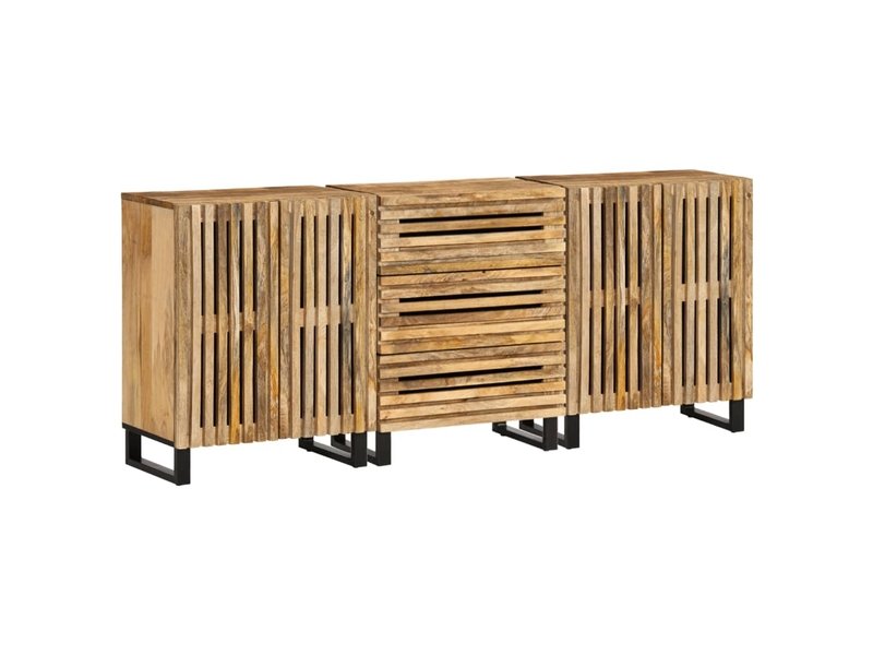 Livrés avec un buffet à trois tiroirs et deux buffets à deux portes, ces meubles constituent une solution de rangement élégante, durable et fonctionnelle pour une maison au style affirmé.