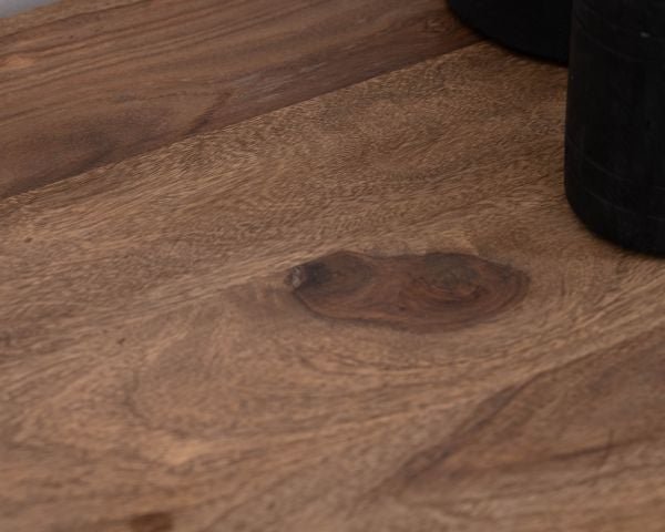 Pour l’entretien, il est recommandé d’utiliser un chiffon doux non pelucheux, légèrement humidifié si nécessaire, et d’éviter les produits agressifs. Un soin spécifique pour bois exotiques appliqué tous les 2 à 3 ans permettra de nourrir le bois et de préserver son éclat naturel. Buffet moderne en palissandre et acacia avec éclairage LED