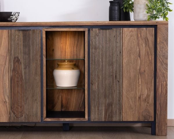 Buffet moderne en palissandre et acacia avec éclairage LED
