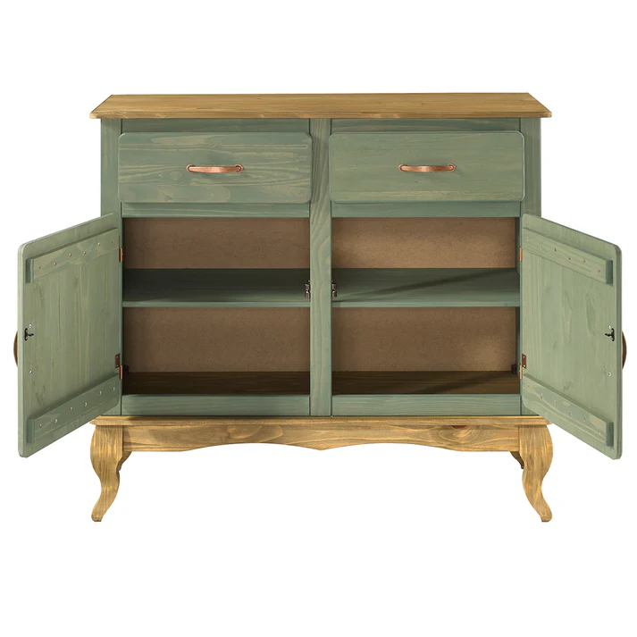 Bring charm, style, and practical organization to your space with this beautifully designed Buffet Sideboard Green 2-Door. Perfect for modern, vintage, coastal, or farmhouse-inspired interiors, this 2-door, 2-drawer wooden sideboard is crafted from premium-quality solid wood, ensuring long-lasting durability and excellent performance in any room of your home.