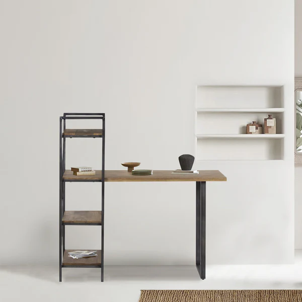 Doté d’étagères intégrées, ce bureau avec étagères propose un espace de rangement pratique pour vos livres, dossiers et fournitures de bureau. Cette conception intelligente permet de garder vos essentiels à portée de main tout en maintenant un espace de travail ordonné et fonctionnel. Les étagères ajoutent également une dimension esthétique supplémentaire, renforçant le caractère moderne du bureau de travail en bois. bureau en manguier massif