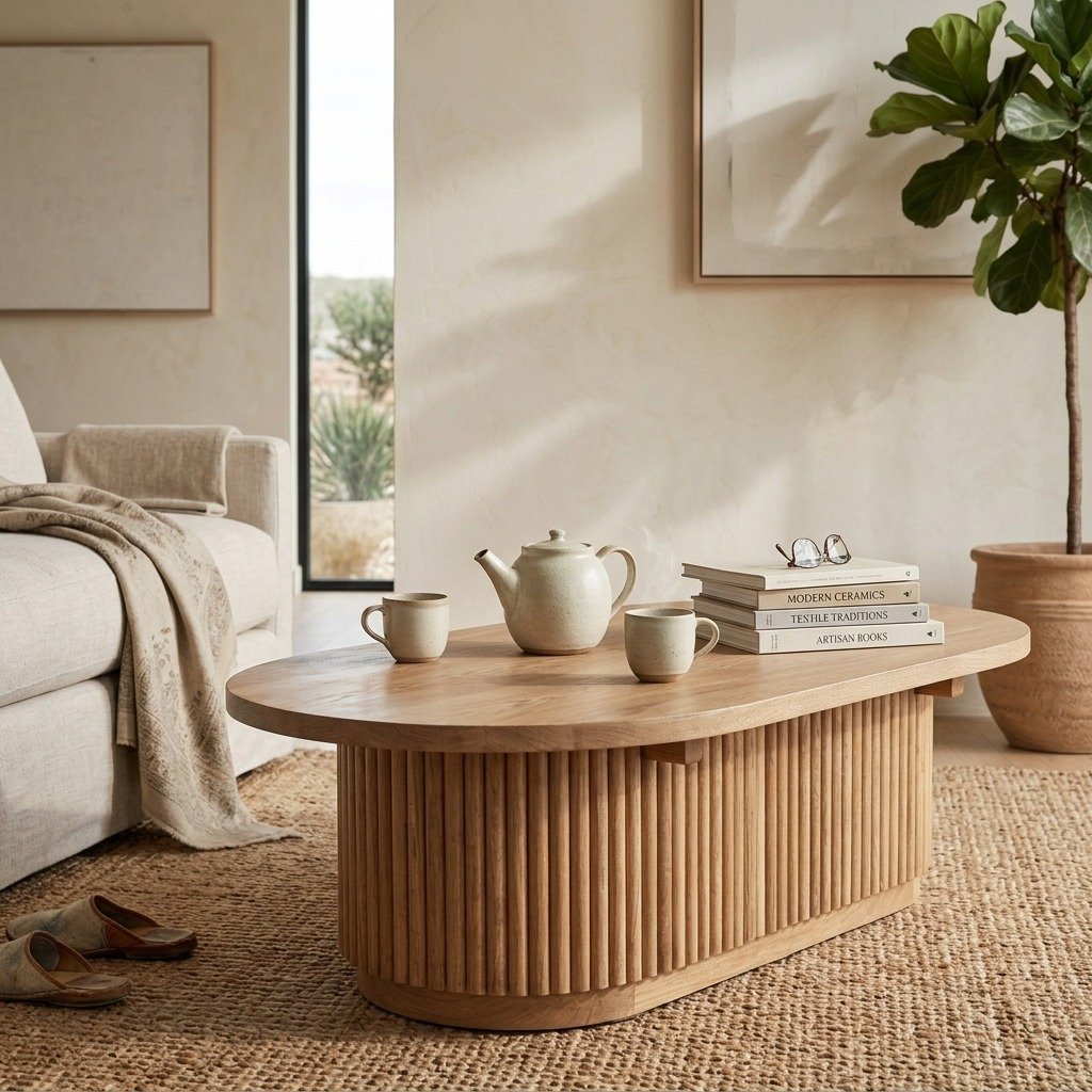 The Coffee Table (Solid Wood) is a contemporary and practical centerpiece, designed to enhance living room spaces with its sleek lines and functional features. Here’s a detailed description: