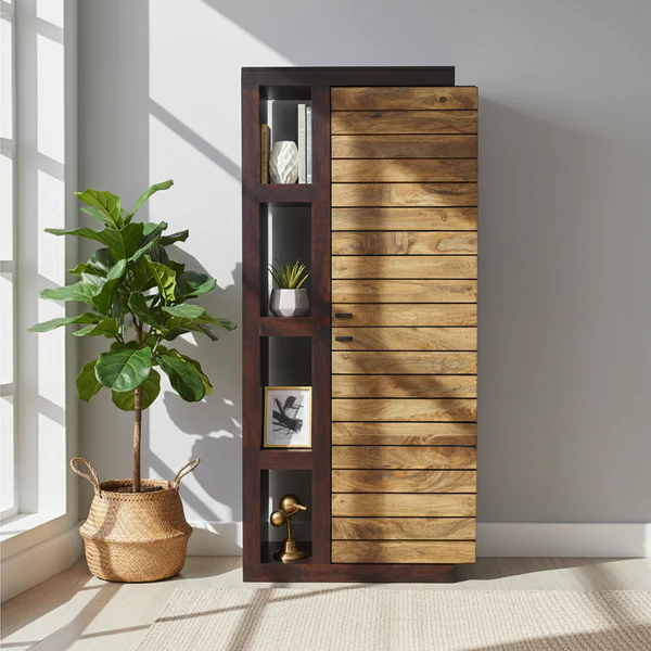 Avec son design exotique et Art déco revisité, cette colonne bibliothèque en manguier massif transforme votre intérieur en un espace chic, cossu et sophistiqué, tout en offrant un rangement pratique et élégant pour vos objets préférés. Une pièce unique qui allie style, authenticité et utilité au quotidien.