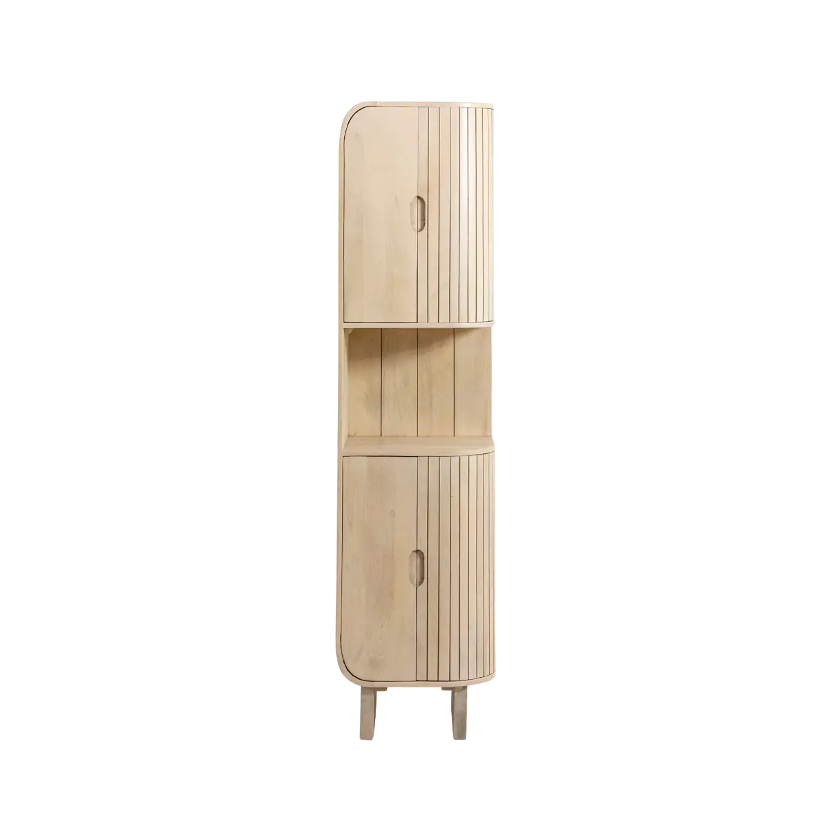 Grâce à sa hauteur de 180 cm et à sa largeur maîtrisée de 45 cm, cette colonne en bois de manguier exploite intelligemment l’espace vertical sans alourdir visuellement la pièce. Elle dispose de deux espaces de rangement fermés, parfaits pour dissimuler vos objets du quotidien, ainsi que d’une niche centrale ouverte qui permet de mettre en valeur livres, cadres photo ou objets décoratifs. Cette combinaison offre un équilibre idéal entre rangement pratique et mise en scène décorative.