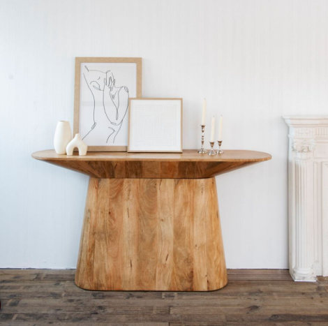 La madera de mango le da un aspecto cálido y natural que añade calidez a cualquier espacio. Consola ovalada de madera de mango