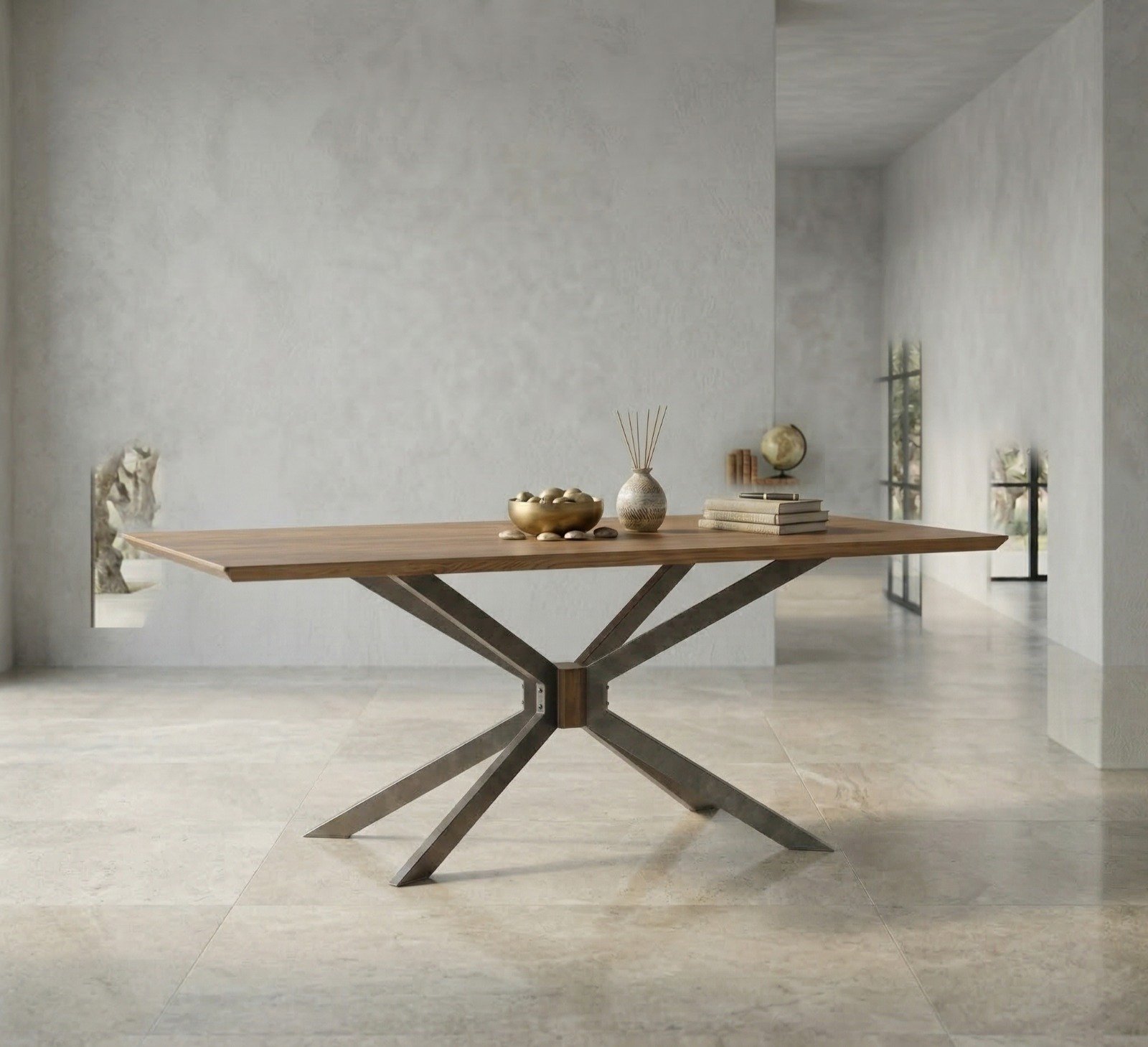 Wooden Spider Wide-Console Table with Metal Legs