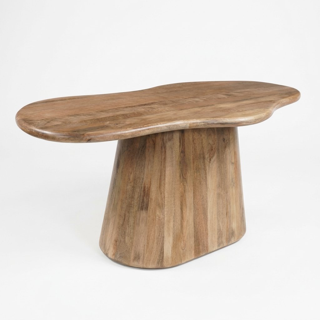 The Eettafel Priti Brown with Monolithic leg – Organic | 180 cm is an organic-shaped dining table crafted from high-quality mango wood in a rich brown finish, showcasing the natural beauty and texture of the wood. The Eettafel Priti Brown with Monolithic leg – Organic | 180 cm features a flat and smooth surface that enhances its elegant look while maintaining durability. Supported by a strong monolithic leg, this table ensures excellent stability and creates a bold, modern statement. Perfect for contemporary interiors, the Eettafel Priti Brown with Monolithic leg – Organic | 180 cm beautifully combines craftsmanship with unique design. It is also available in other sizes and a natural finish option.