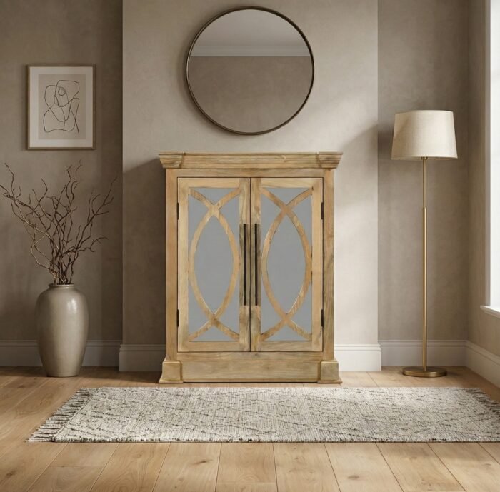 Handcrafted Detailing: Handmade by skilled artisans, this cabinet reflects fine craftsmanship. Subtle variations in wood tone and finish enhance its authenticity and uniqueness.