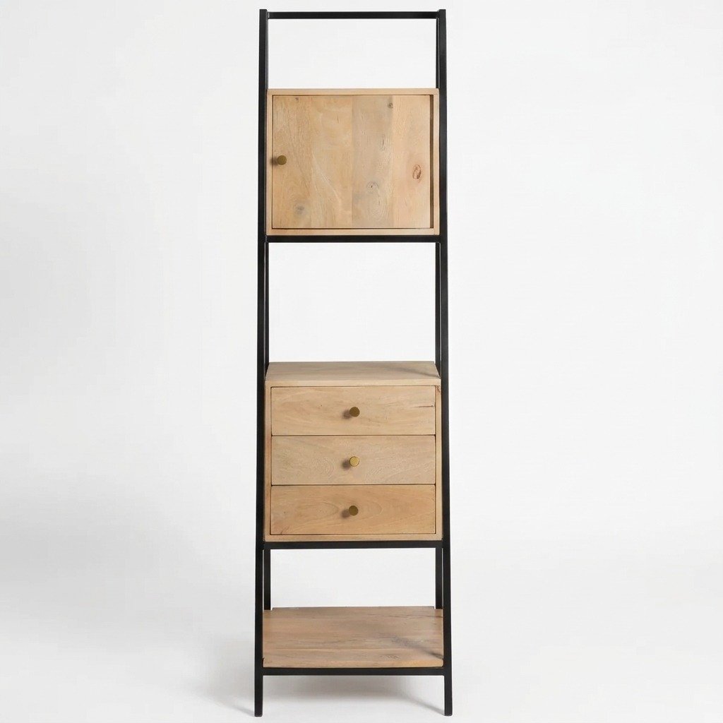 Combines solid mango wood with sleek black metal for a refined industrial look.
