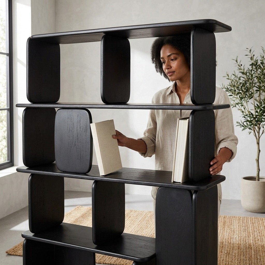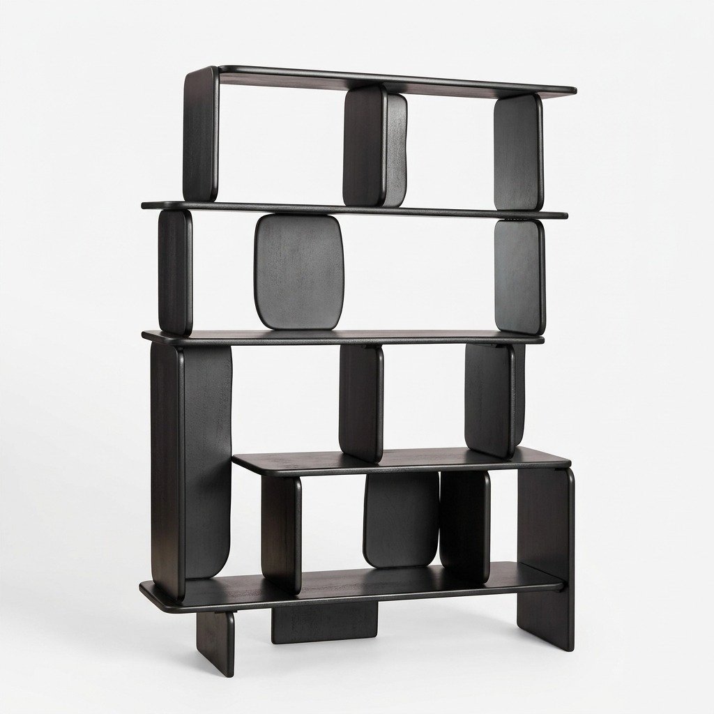 • Modern Abstract Form: Features a bold, monolithic design with asymmetrical shelves of varying sizes, adding depth and visual interest.