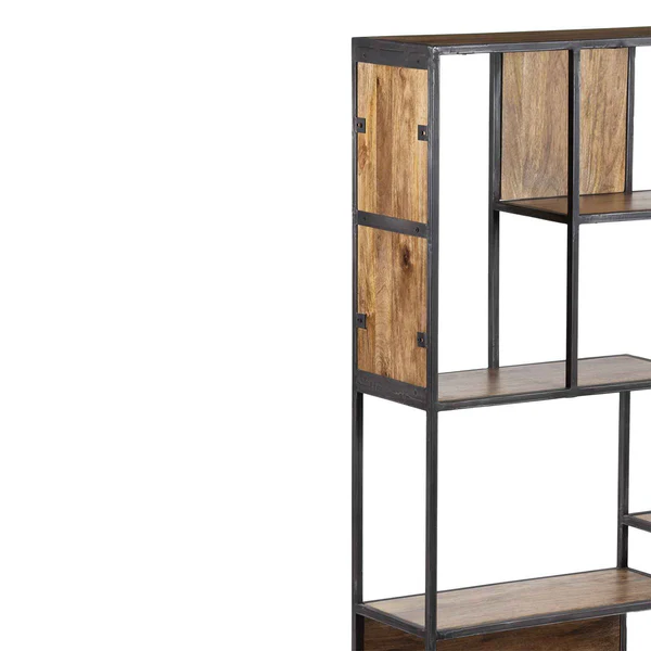Cette étagère industrielle en manguier et métal combine fonctionnalité et design contemporain. Elle est parfaite pour ceux qui recherchent un meuble de rangement design, durable et unique, capable d’apporter caractère, style et organisation à votre espace de vie. Étagère destructurée en manguier