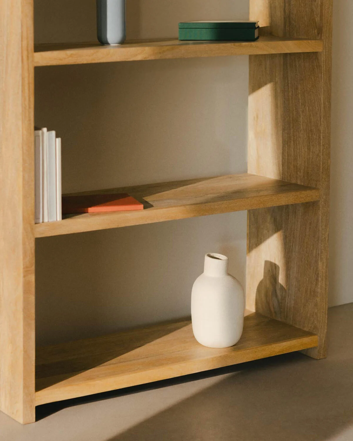 L’étagère en bois de manguier Vanille est une pièce polyvalente et élégante, conçue pour optimiser le rangement tout en valorisant la décoration de n’importe quel espace intérieur. Fabriquée en bois massif de manguier, un matériau apprécié pour sa solidité, sa stabilité et son charme authentique, cette étagère offre une solution fonctionnelle pour organiser et exposer livres, accessoires décoratifs, plantes, cadres ou objets du quotidien. Étagère en bois de manguier (181 x 100 cm)
