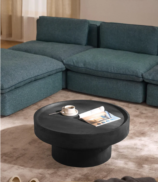 Black Round Wooden Coffee Table – Modern Minimalist Centerpiece for Stylish Living Spaces