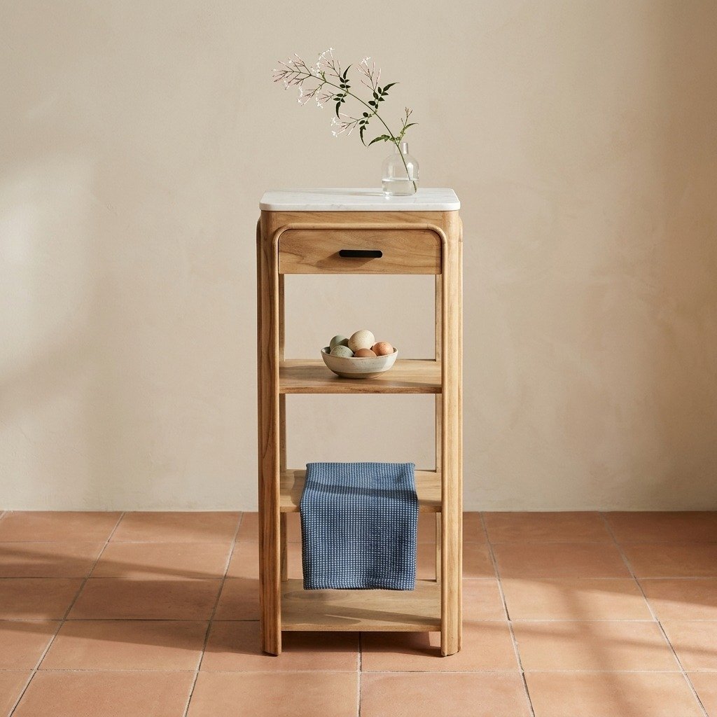 Crafted from high-quality acacia wood, each Forest Edge Shelf showcases warm natural tones and distinctive grain patterns, giving every piece a unique, authentic character. The sturdy construction guarantees longevity, while the refined design adds a subtle touch of sophistication to your interiors.