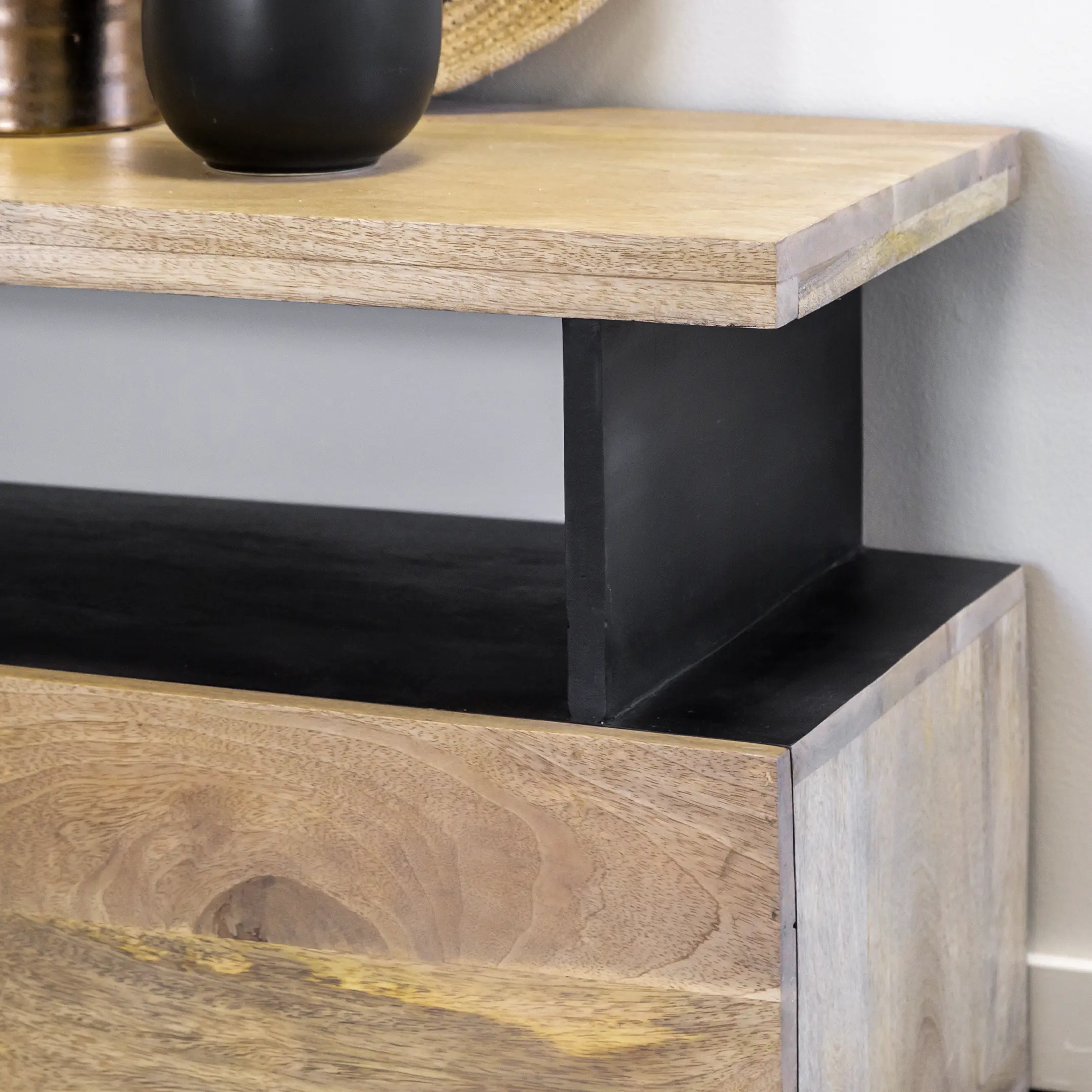 • Modern Gathering Sideboard for Dining Room (Solid Wood) – Transform your home with the bold elegance of the Modern Gathering Sideboard, a statement piece that masterfully combines functionality with artistic design. Crafted from premium black mango wood, this sideboard offers strength, durability, and a rich dark finish that exudes sophistication. Its unique asymmetrical silhouette brings a contemporary edge, making it a centerpiece that instantly elevates the ambiance of any living or dining room.