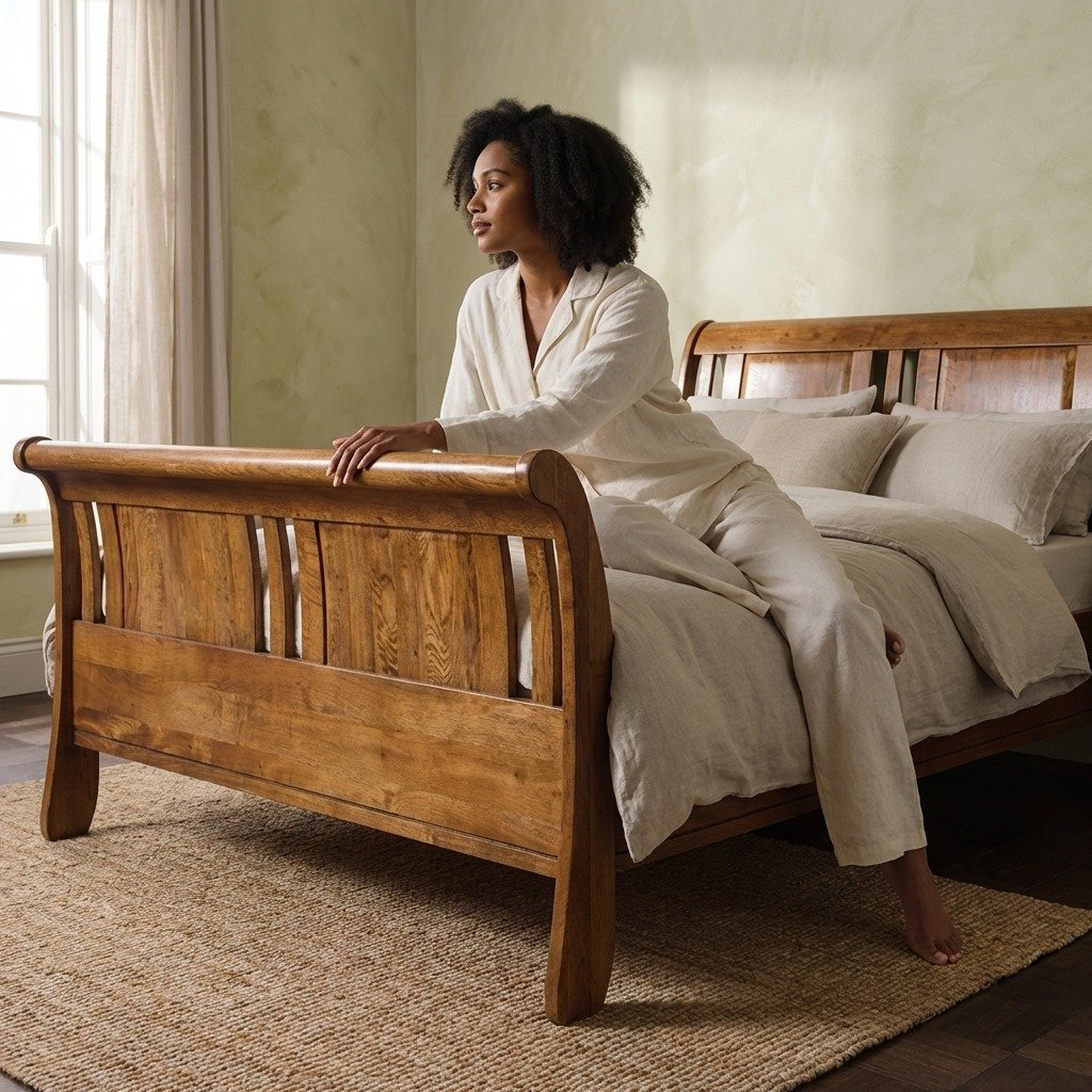 4. Modern Cut-Out Detailing – A contemporary design twist, the cut-out features add lightness and visual interest to the otherwise classic sleigh silhouette, making it suitable for both traditional and modern settings. Handcrafted Wooden High-Frame Bed