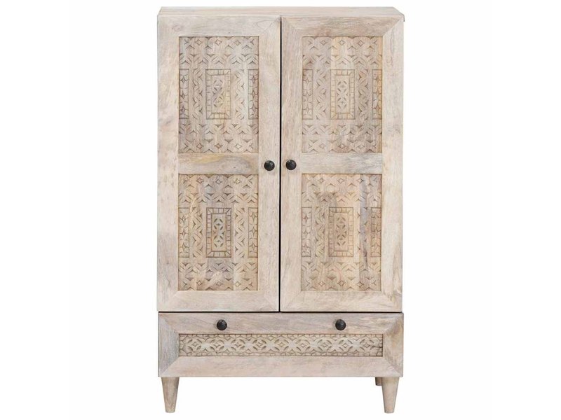 Ce meuble haut en bois de manguier offre un grand espace de rangement grâce à ses étagères en planches, idéales pour organiser vaisselle, livres, accessoires ou objets décoratifs. Les portes à charnières au design épuré, équipées de boutons à finition mate, garantissent un accès facile tout en conservant une esthétique moderne et ordonnée. Elles permettent de dissimuler vos effets personnels tout en gardant un intérieur propre et harmonieux.